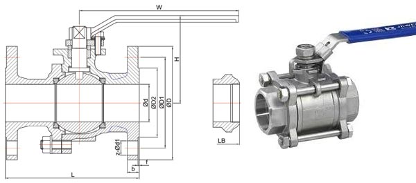 - Dimensions of Class 150LB Stainless Steel 304L Ball Valves